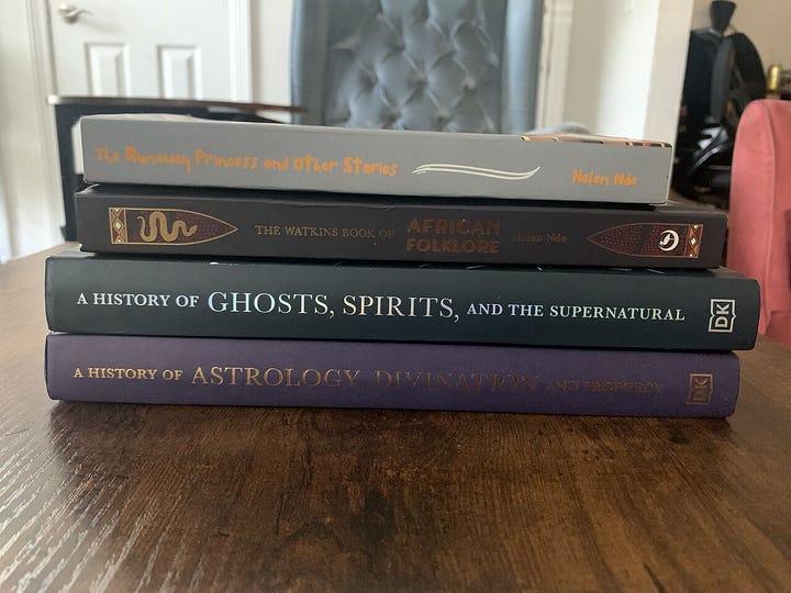 These days, I try to keep things easy going with MA. I aim to publish weekly 10 - 30 minute podcast episodes, monthly (or bi-monthly) newsletters, and quarterly long form essays. I don’t always meet these goals so if you must have your African mythology fix, I’ve also been fortunate to publish two books on African mythology and folklore, and contribute to a few others. Check out my work here.
